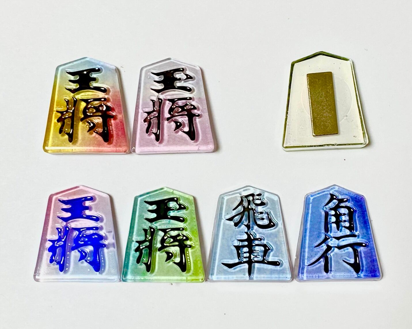 「王将」「玉将」「飛車」「角行」の4種類の駒が合計10個入っています。