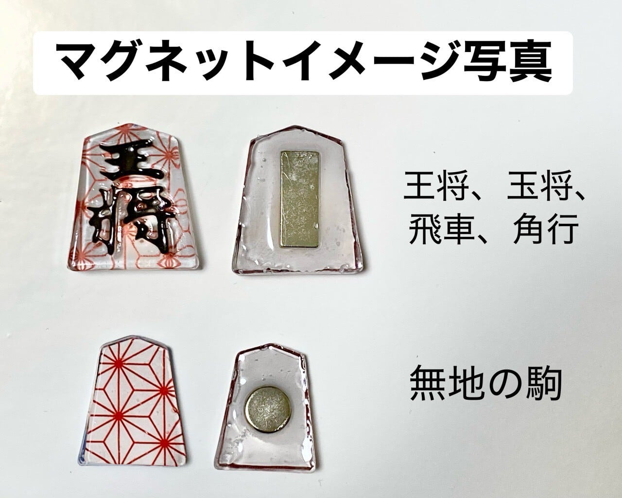 「王将」「玉将」「飛車」「角行」の4種類の駒が合計10個入っています。