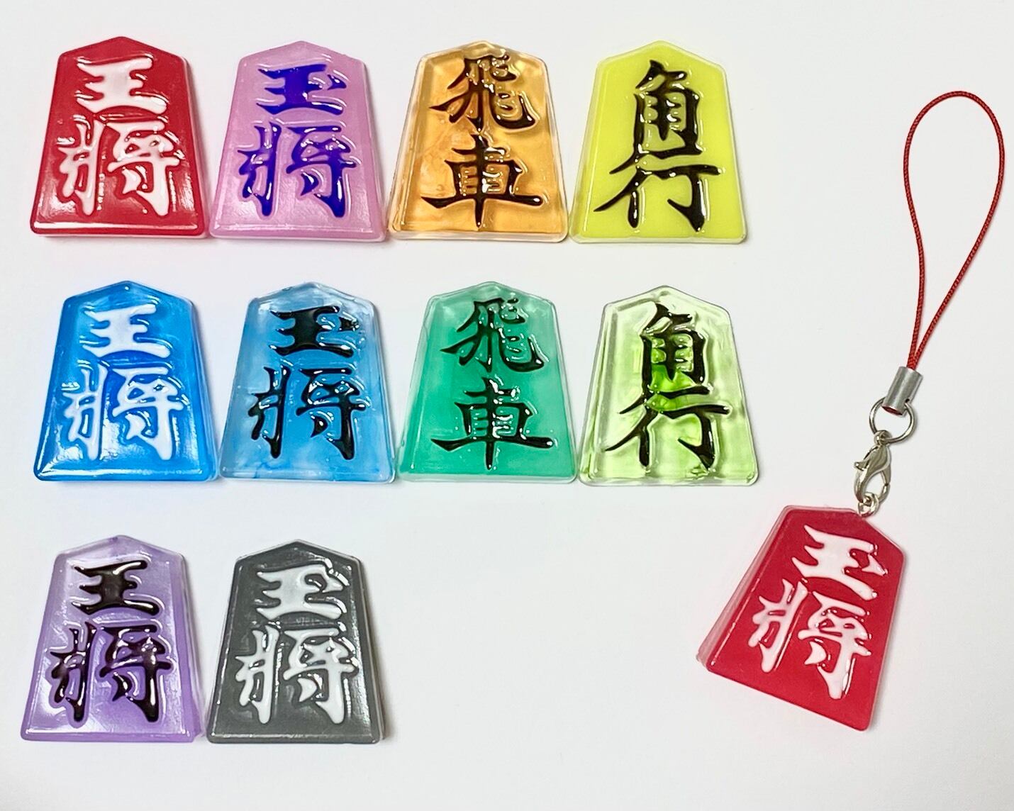 「王将」「玉将」「飛車」「角行」の4種類の駒が合計10個入っています。