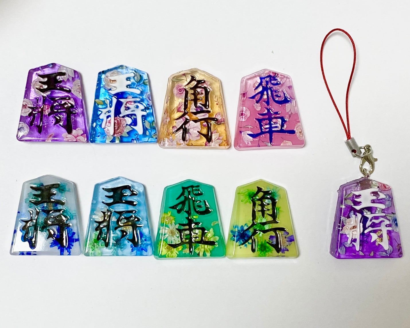 「王将」「玉将」「飛車」「角行」の4種類の駒が合計10個入っています。